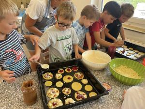 Děti ze základní školy chodí číst do naší školky. Společně pak vždy zažijí krásné dopoledne. Dnes společně upekli dort skoro stejný jako v pohádce pejsek a kočičkou. Byl ale jen ze správných surovin a děti si na něm druhý den moc pochutnaly.