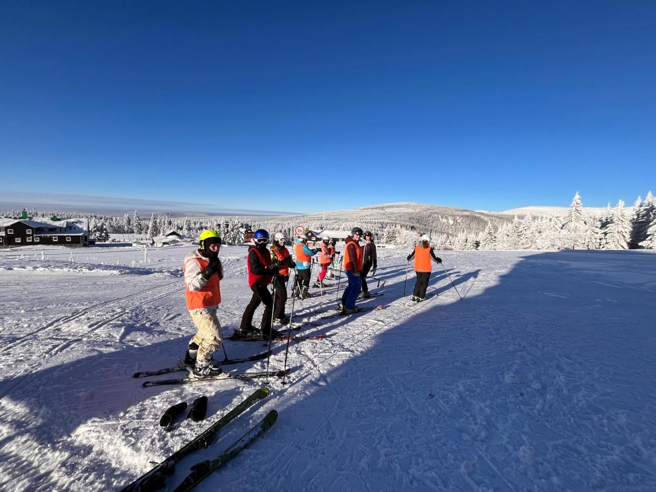 Mnozí začátečníci zvládli své první obloučky a ostatní pokročilí lyžaři najezdili spoustu kilometrů. Ve čtvrtek jsme absolvovali ski-tour rolbou z Černé hory do Pece pod Sněžkou. Žáci si za přístup k výcviku zaslouží pochvalu.